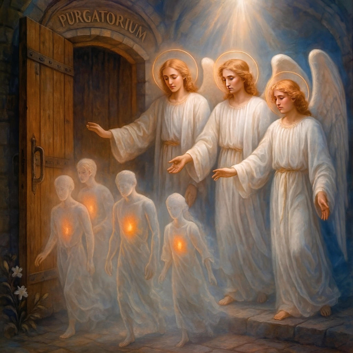 Λέγανε ότι ήταν η πύλη προς το «Καθαρτήριο», όπως τη χαρακτήρισαν οι αγγελοί, και τους επιτρεπόταν να ανοίξουν αυτήν την πόρτα λόγω του Αγίου Θυσιαστού Μάζας μας και των προσευχών μας. Οι αγγελοί οδήγησαν ψυχές νεκρών έξω από αυτήν τη πύλη, οι οποίες είχαν μορφή ανθρώπων, αλλά είδα ότι μέσα τους καίει μια μικρή φλόγα. Ήταν, με άλλα λόγια, διαφανείς για μένα.